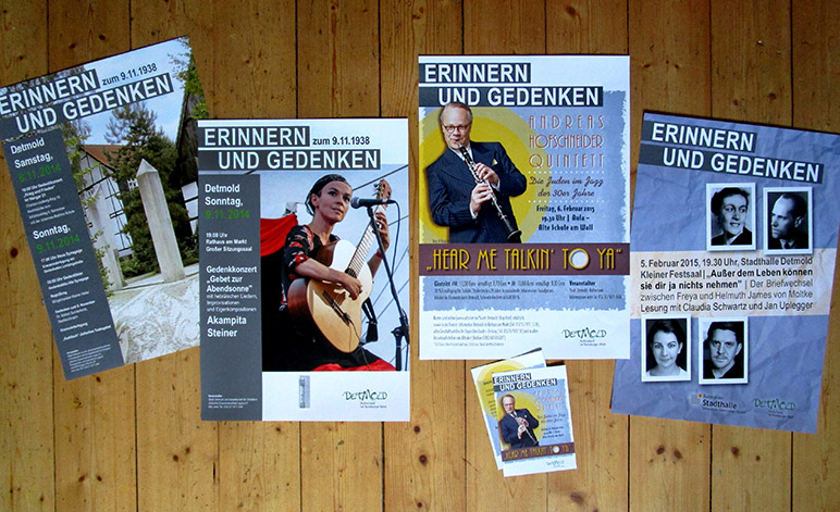 Gestaltung von Plakaten in A2 und A3, Faltblättern und Flyern zu verschiedenen Veranstaltungen in der Reihe "Erinnern und Gedenken“ (Reichskristallnacht, 09.11.1938 und zum Tag des Gedenkens, 27.01.1945).